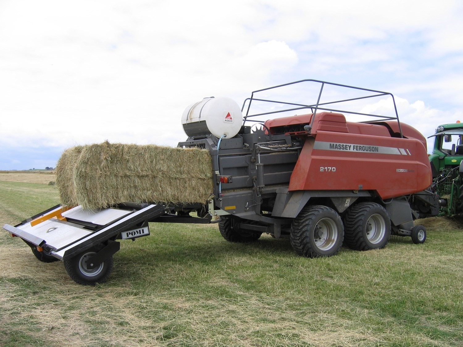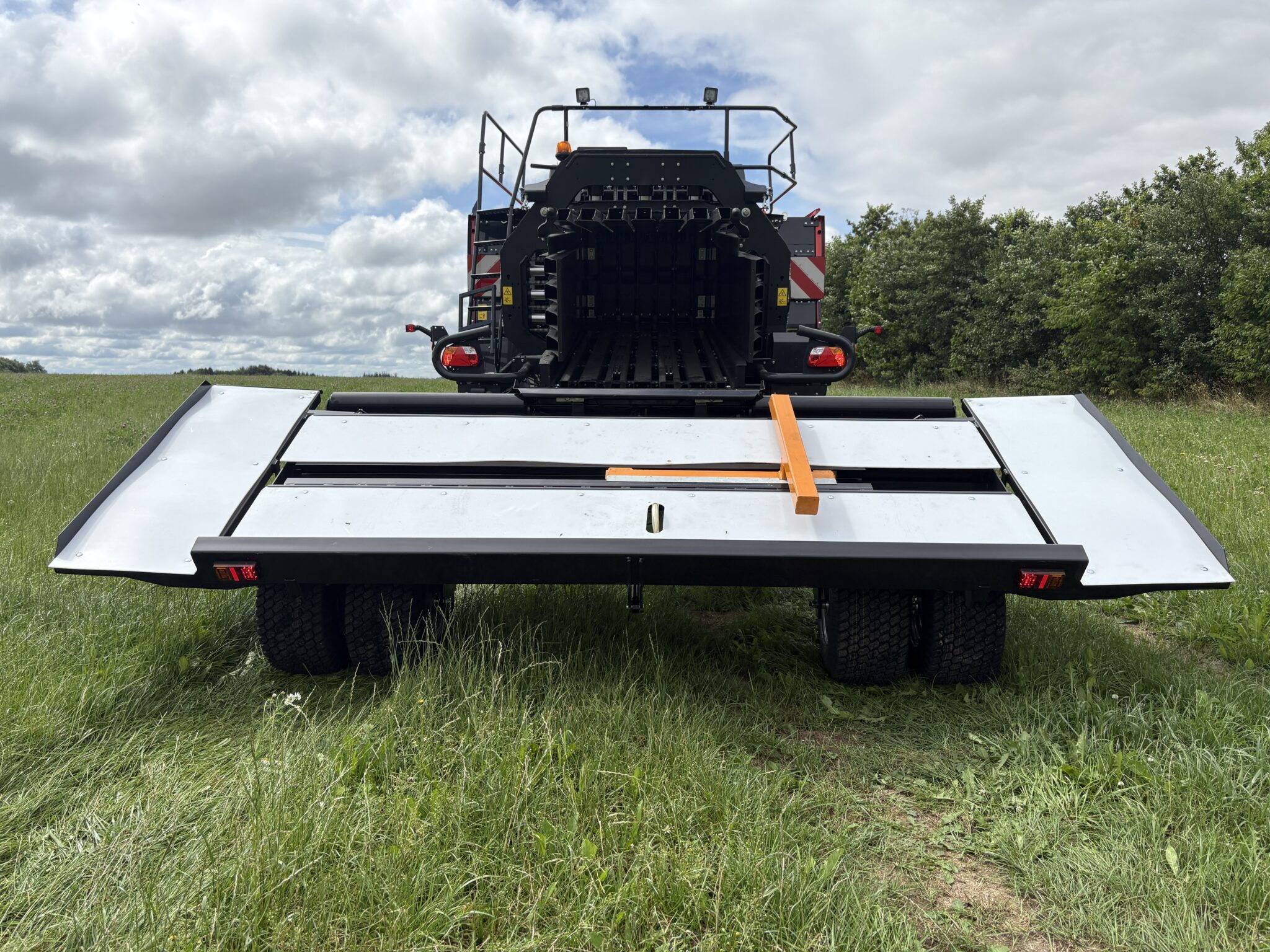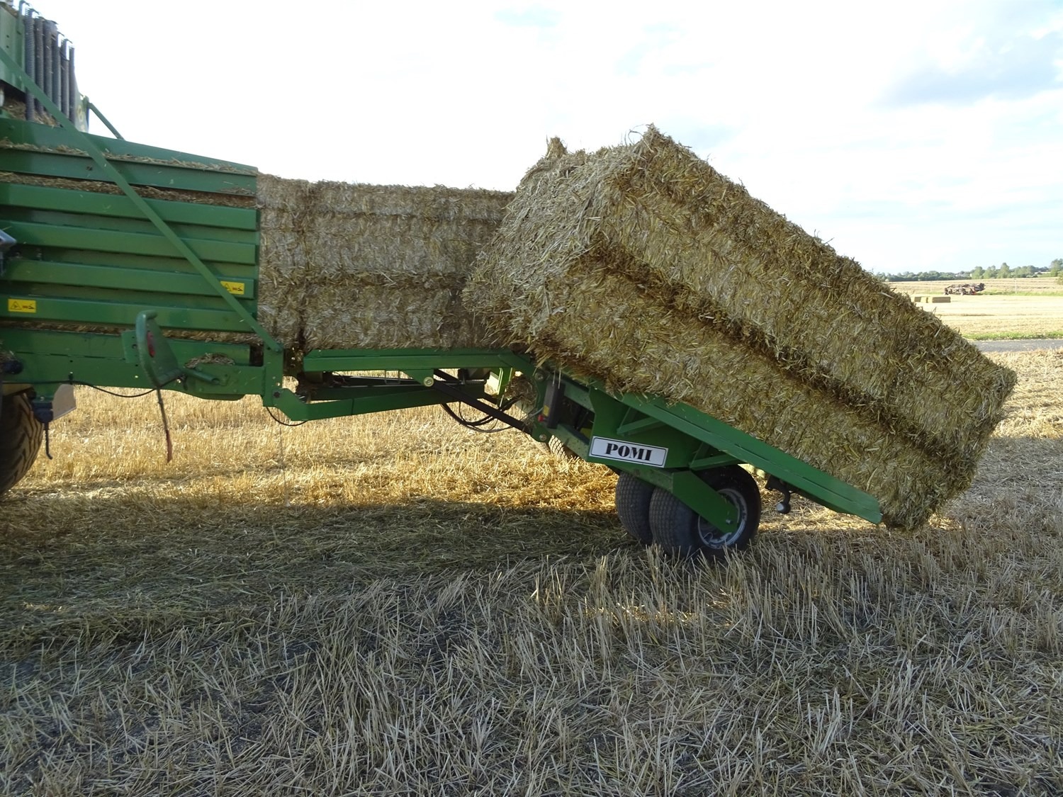 Die Lösung ist leicht und kompakt und für alle gängigen Ballengrößen geeignet. Der Anhänger kann alle Arten von Quaderballen aufnehmen und ist besonders auf Grünlandflächen nützlich, wo eine schnelle Aufnahme entscheidend ist. In der Praxis kann die Aufnahmezeit um bis zu 50 % reduziert werden, was eine spürbare Zeitersparnis im täglichen Betrieb bedeutet.